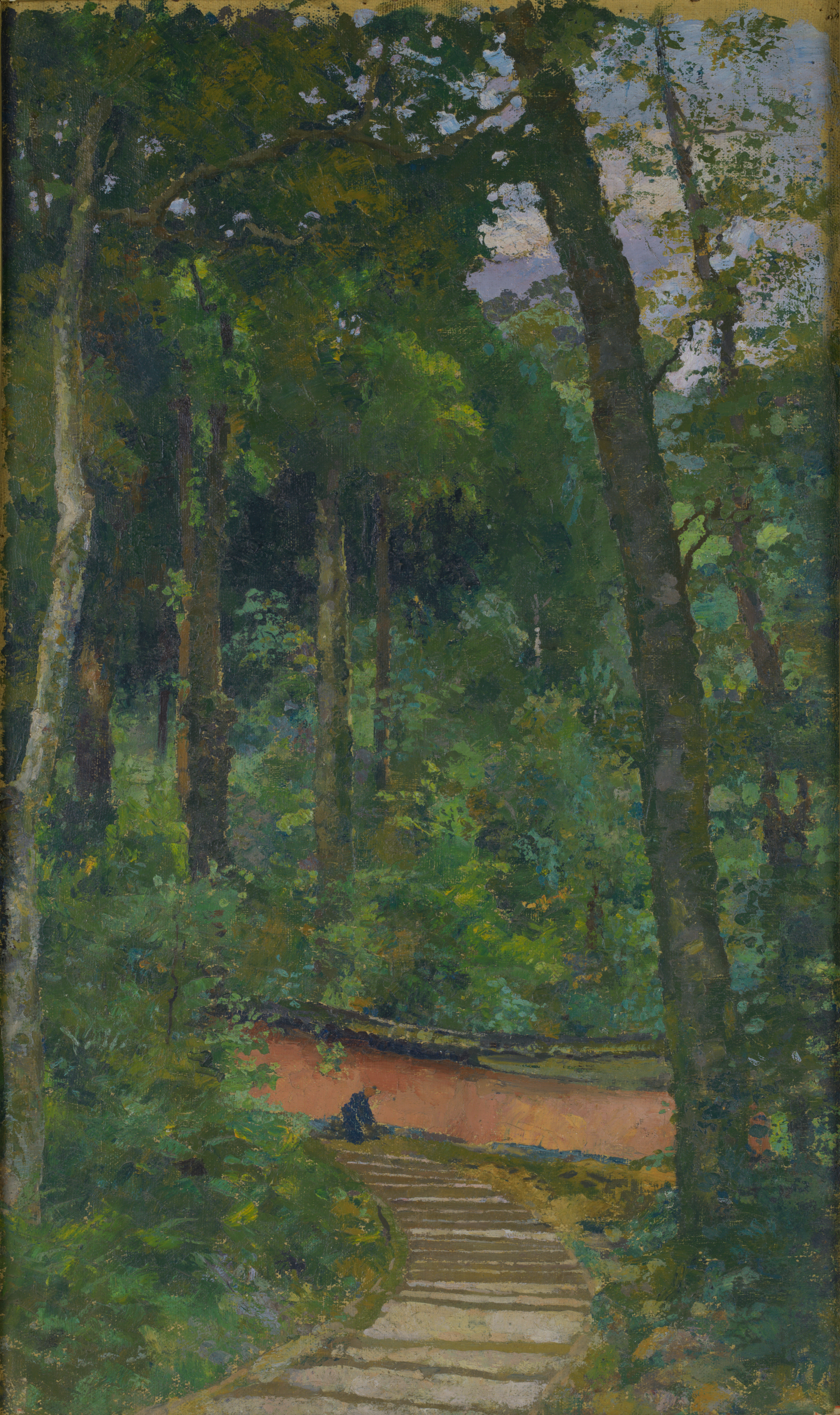 1935年,徐悲鸿第一次来到四川,开启了他的川蜀游历之旅。峨眉山的雄奇险峻,青城山的幽静清雅,都让他流连忘返。《峨眉古寺》便是徐悲鸿离开峨眉山后的回忆之作。这幅画以水墨速写的方式,将峨眉山的景致定格于画卷之上:树干寥寥数笔勾勒,却尽显苍劲挺拔;叶片不拘形态,随意点染,却充满生机;石面与背景用淡墨轻轻涂抹,朦胧间尽显山间云雾缭绕的意境。每一处细节,都饱含着徐悲鸿对峨眉山的喜爱与眷恋,也让我们得以窥见九十多年前,峨眉古寺的清幽与雅致。