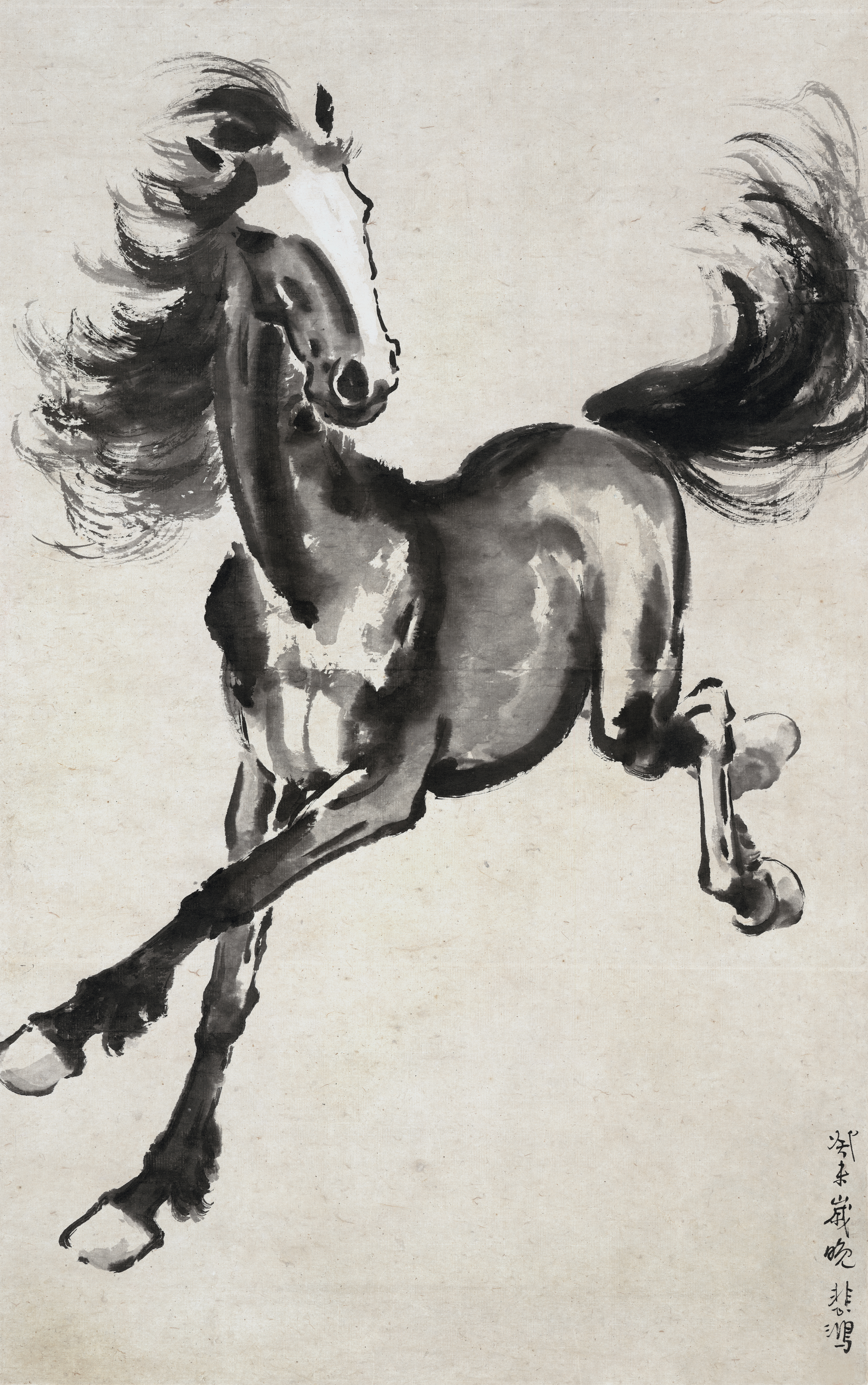 作为中国现代美术教育的奠基者,徐悲鸿所作国画彩墨浑成,尤以奔马享名于世,其英姿飒爽的骏马形象,早已深入人心。马,不仅是徐悲鸿画作中的典范,更已镌刻在一代中国人的记忆里。
